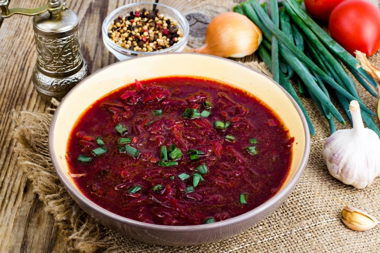- Мясной бульон – 2 л * Свекла – 3 штуки * Морковь – 3 штуки * Краснокочанная капуста – 350 г *