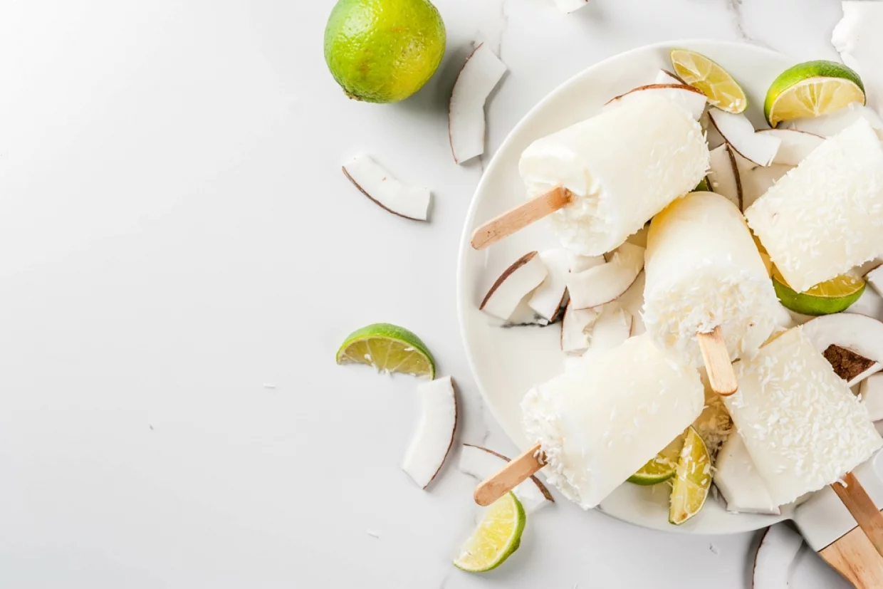 1.Смешайте кокосовое молоко, кокос и сливки, добавьте остальные ингредиенты и взбейте все блендером.
