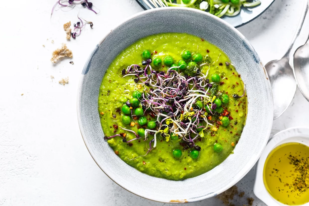 - Горох (зеленый) – 500 г * Цукини – 2 штуки * Овощной бульон – 1-1.5 л * Чеснок – 2 зубчика * Лук-порей – 1 штука