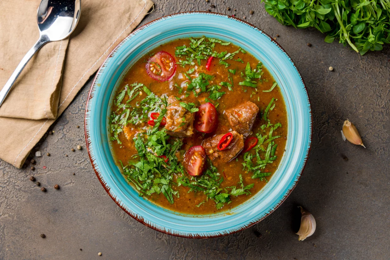 1.Для приготовления такого супа я выбираю баранину возрастом от 3 месяцев до года. Мясо хорошо промойте, удалите лишний жир и поставьте вариться.
