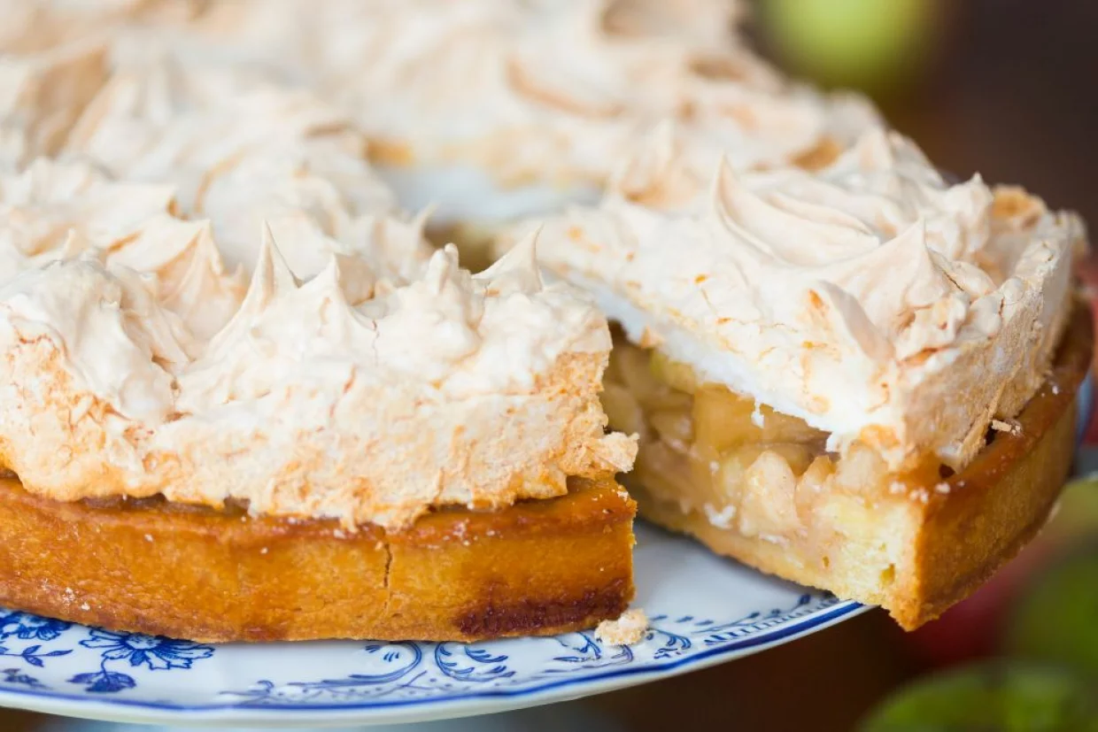 9.Выпекайте песочный торт с яблоками в духовке при 160 градусах около 1 часа.