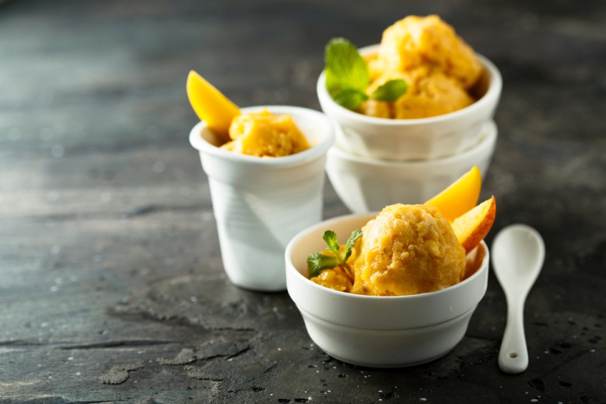 5.Смешайте обе массы блендером и отправьте сорбет в морозилку до застывания.